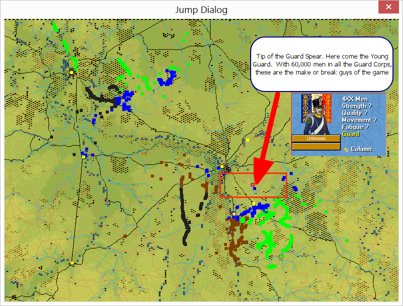 Keep a close eye on the south-central village of Markleeburg, its the make or break part of the game. The Young Guard have arrived, at least one of of the young Guard Corps (Two Divisions) are thrown in to the fight. The funny thing is they did not wait for me to attack and then counter attack, they just attacked supported by the huge I CAV Corps: