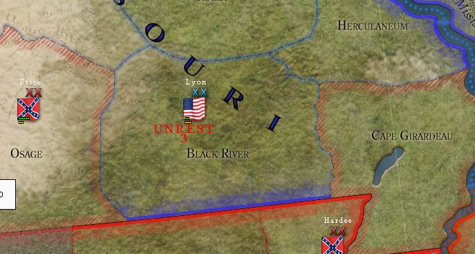I did however manage to capture a small province out in Missouri called Black River which is causing some unrest with the locals.